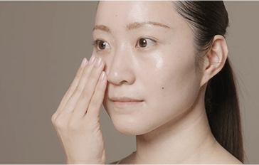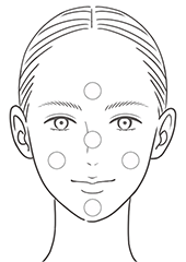 額、鼻筋・小鼻、頬、口周り、目周りの順に内側から外側に向かって、くるくるとなじませます。