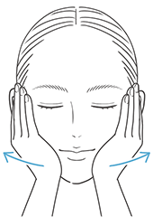 フェイスラインは反対側の手を使い、顎先から耳の裏に向かって指を優しくすべらせます。