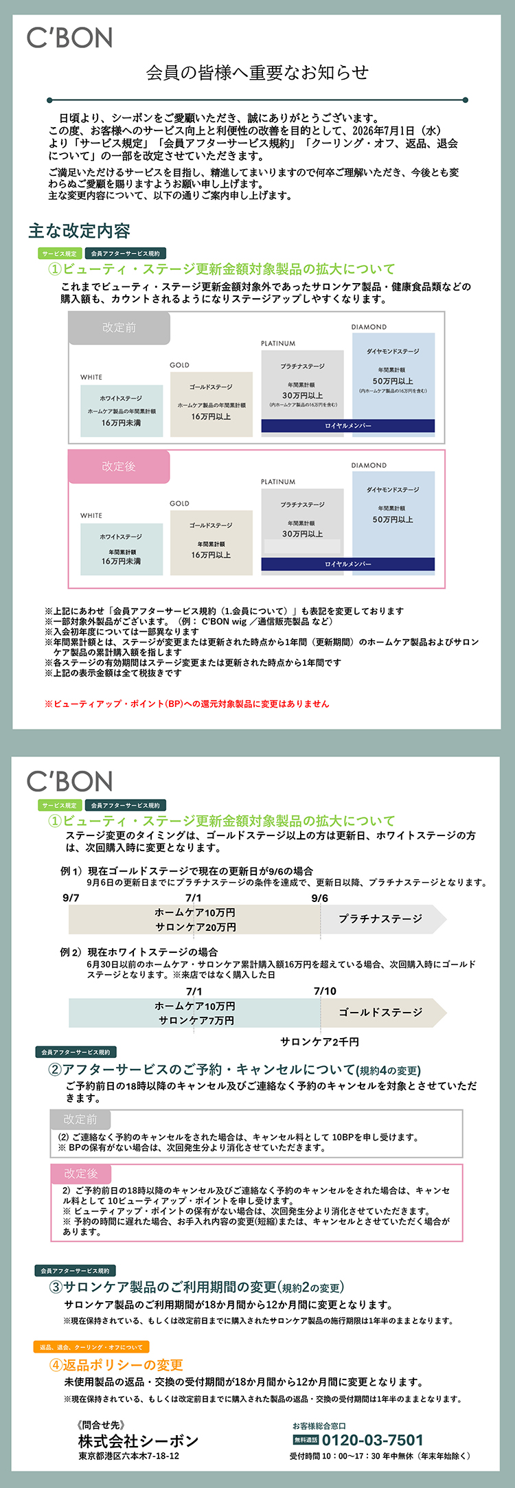 この度、お客様へのサービス向上と利便性の改善を目的として、2026年7月1日(水)より「サービス規定」「会員アフターサービス規約」「クーリング・オフ、返品、退会について」の一部を改定させていただきます。